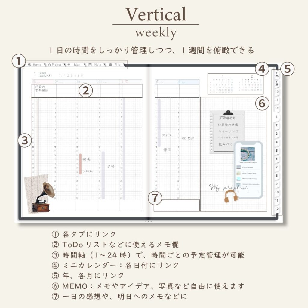 - 週間ページ:Block/Left/Vertical