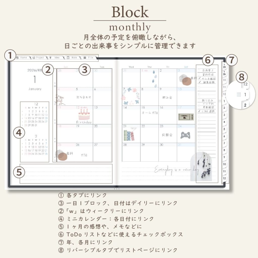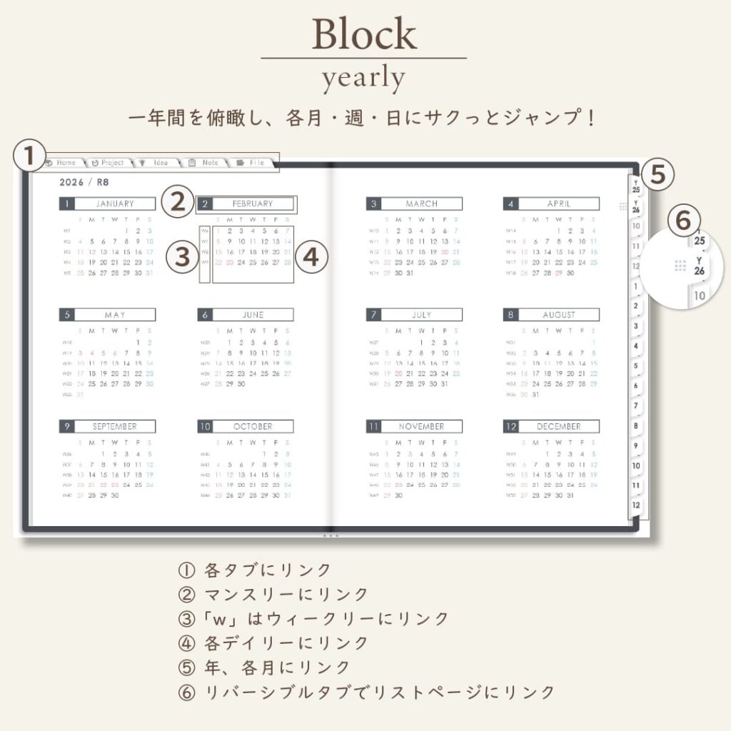 2026年1月始まりしごと手帳[日曜始まり/週:バーチカル/日:2DAY/色:モノ]