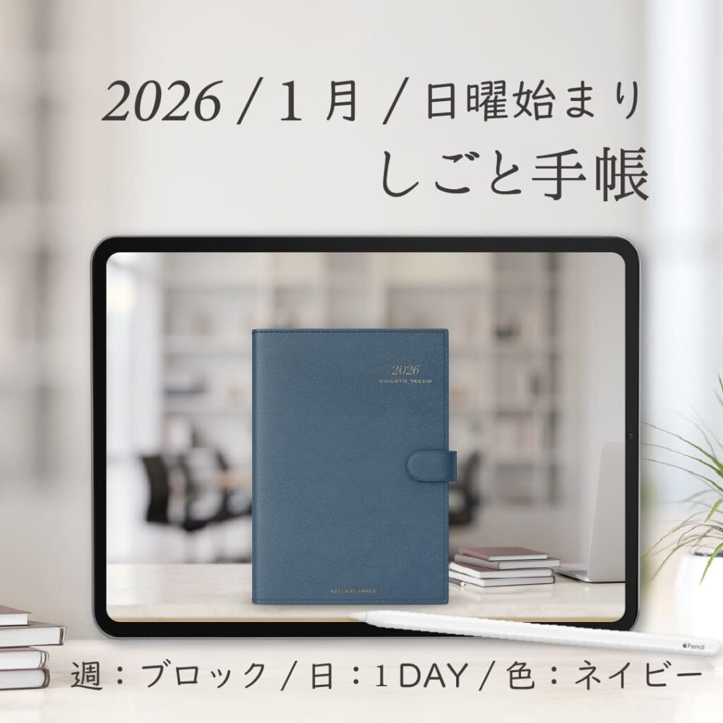 2026年1月始まりしごと手帳[日曜始まり/週:ブロック/日:1DAY/色:ネイビー]