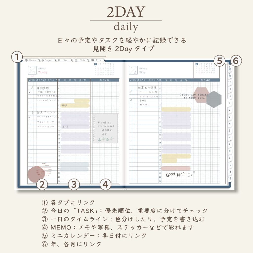 2026年1月始まりしごと手帳[日曜始まり/週:レフト/日:2DAY/色:ネイビー]