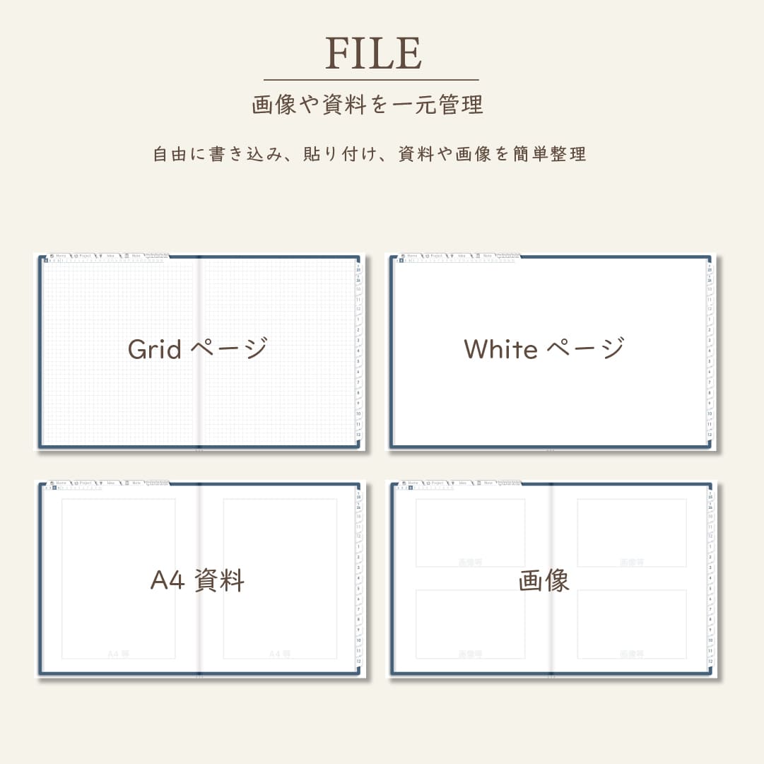 ・ファイル5種類×70Pで資料や画像も整理OK