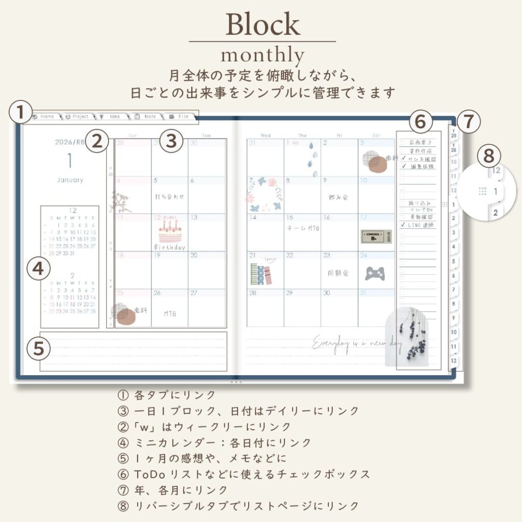 2026年1月始まりしごと手帳[日曜始まり/週:バーチカル/日:1DAY/色:ネイビー]