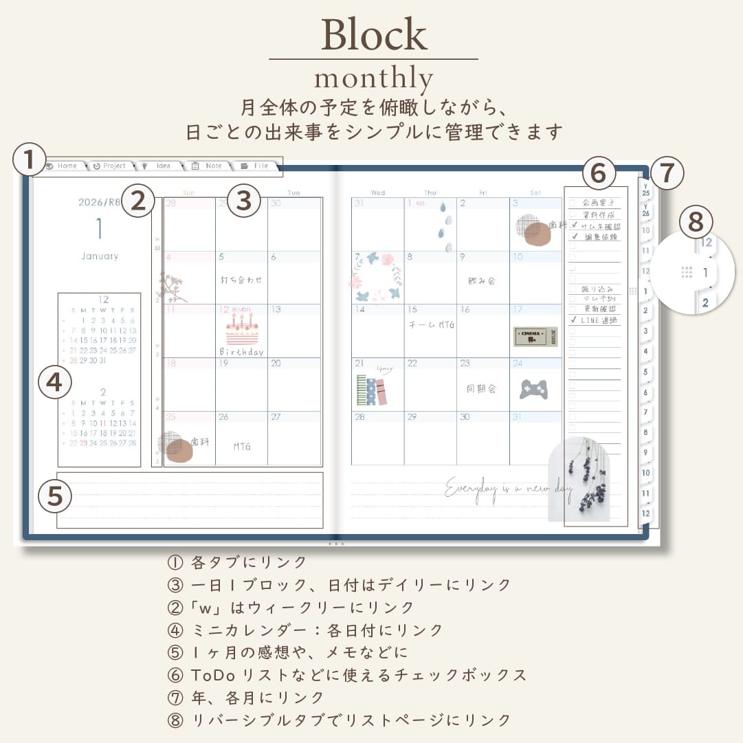 - 週間ページ:Block/Left/Vertical