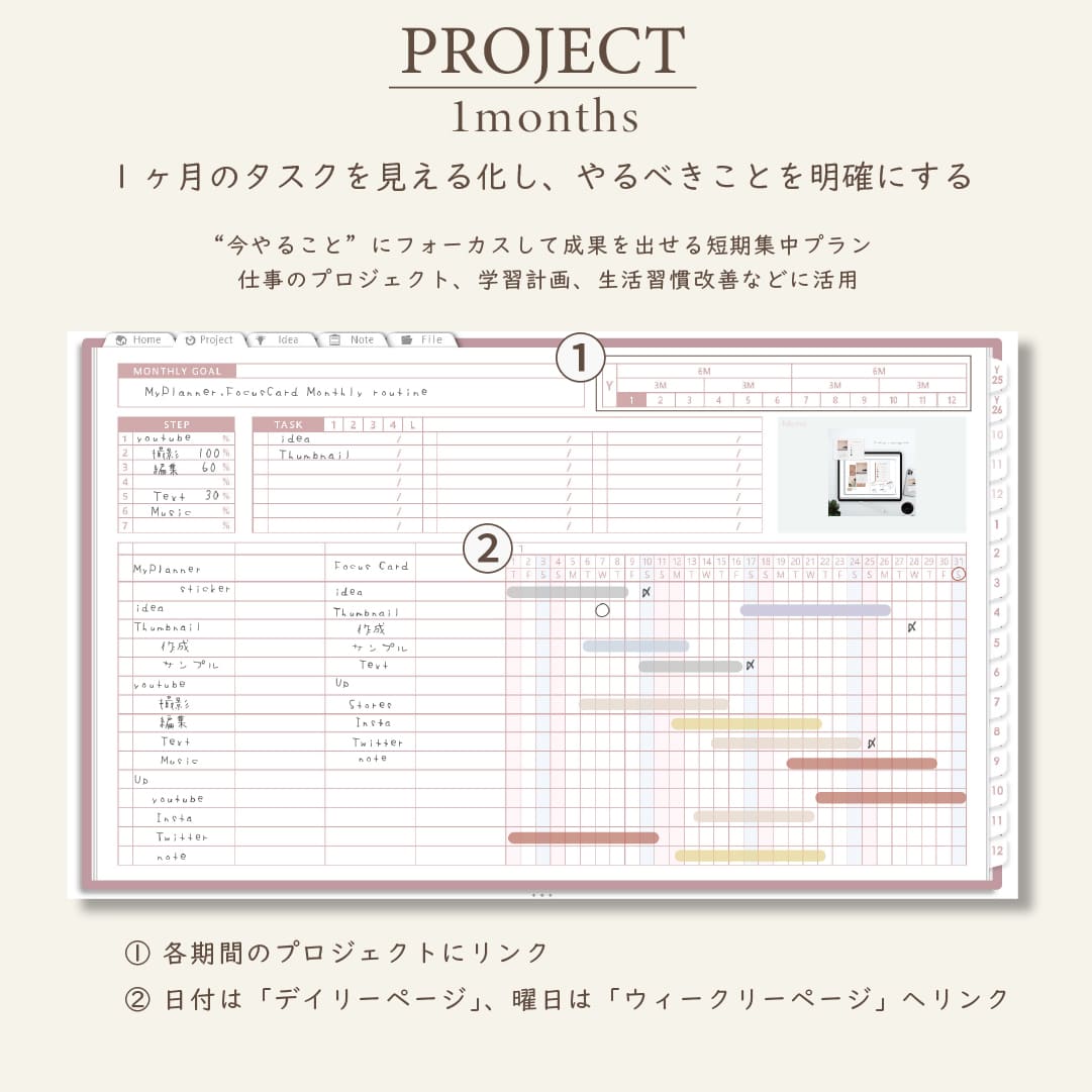・1年/半年/3ヶ月/1ヶ月を見渡せるガントチャート