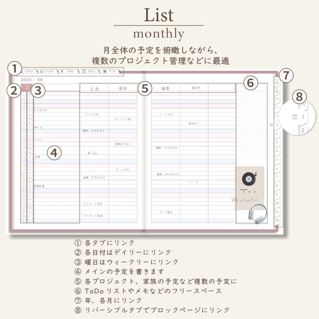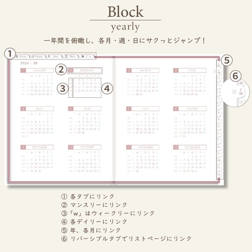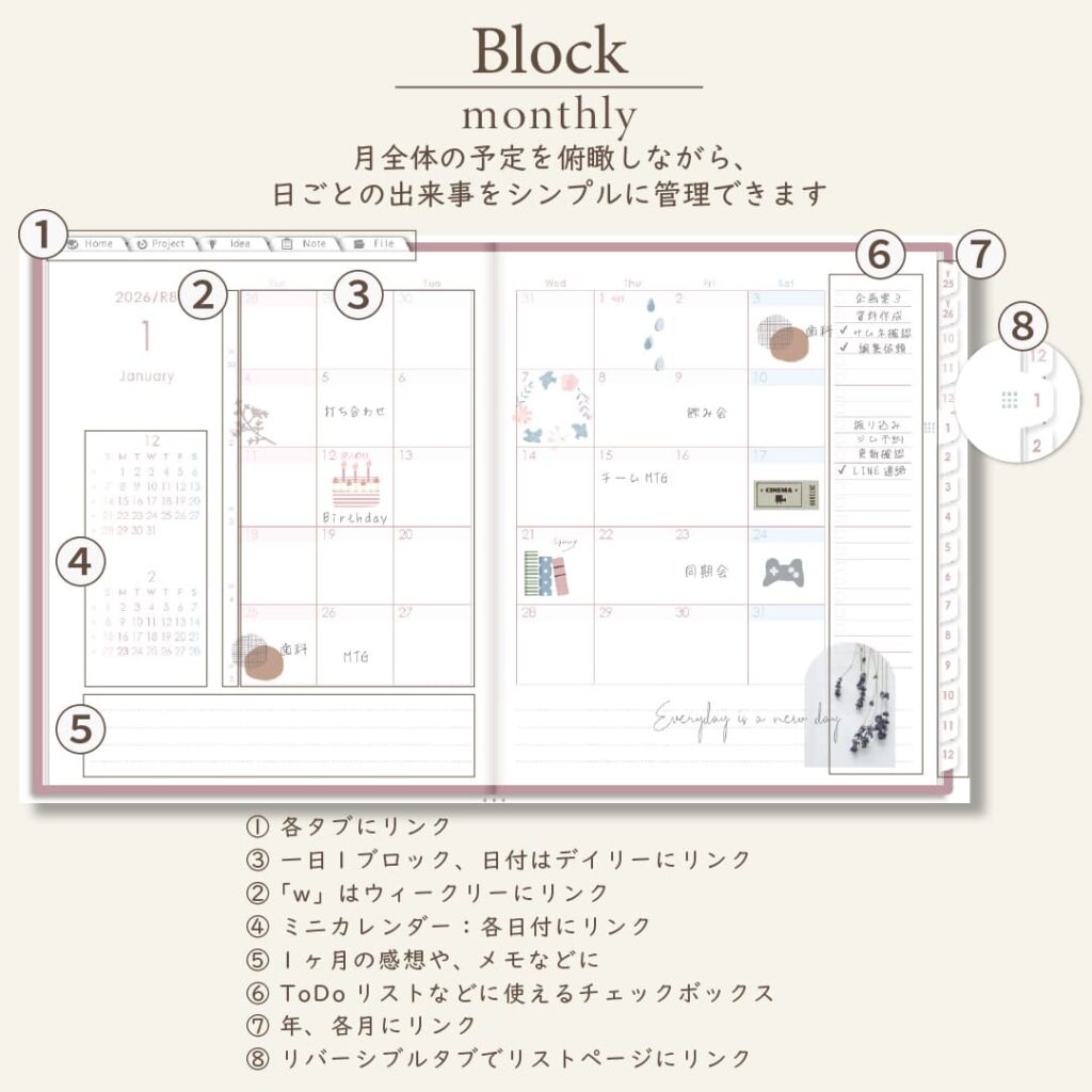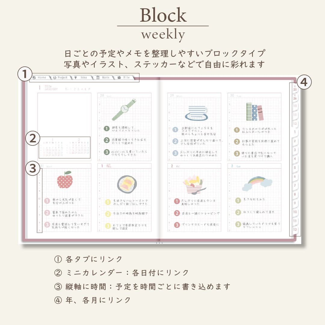 2026年1月始まりしごと手帳[日曜始まり/週:ブロック/日:1DAY/色:サクラ]