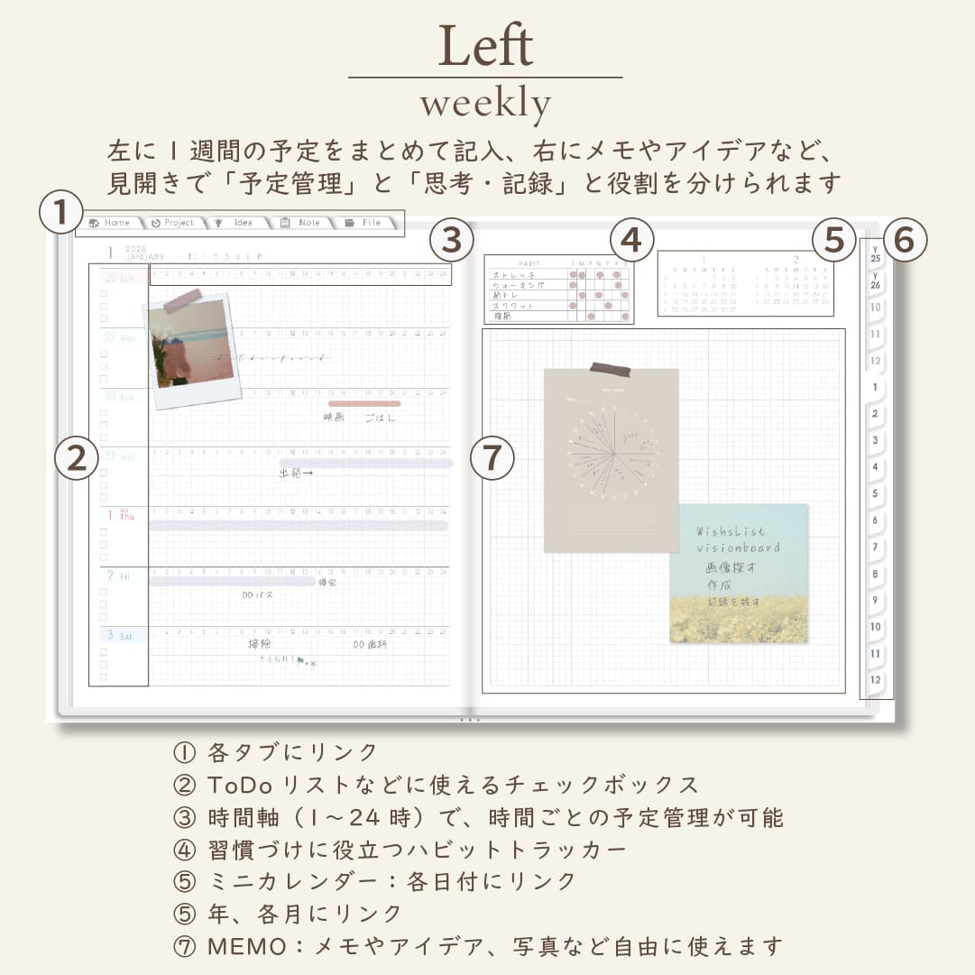 2026年1月始まりしごと手帳[日曜始まり/週:レフト/日:1DAY/色:スノー]