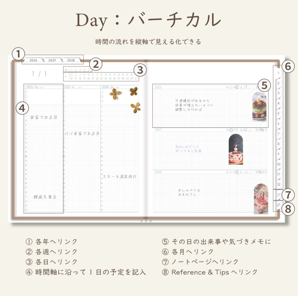 連用手帳のように「昨年の同じ日」をすぐ振り返れるのが最大の魅力です。