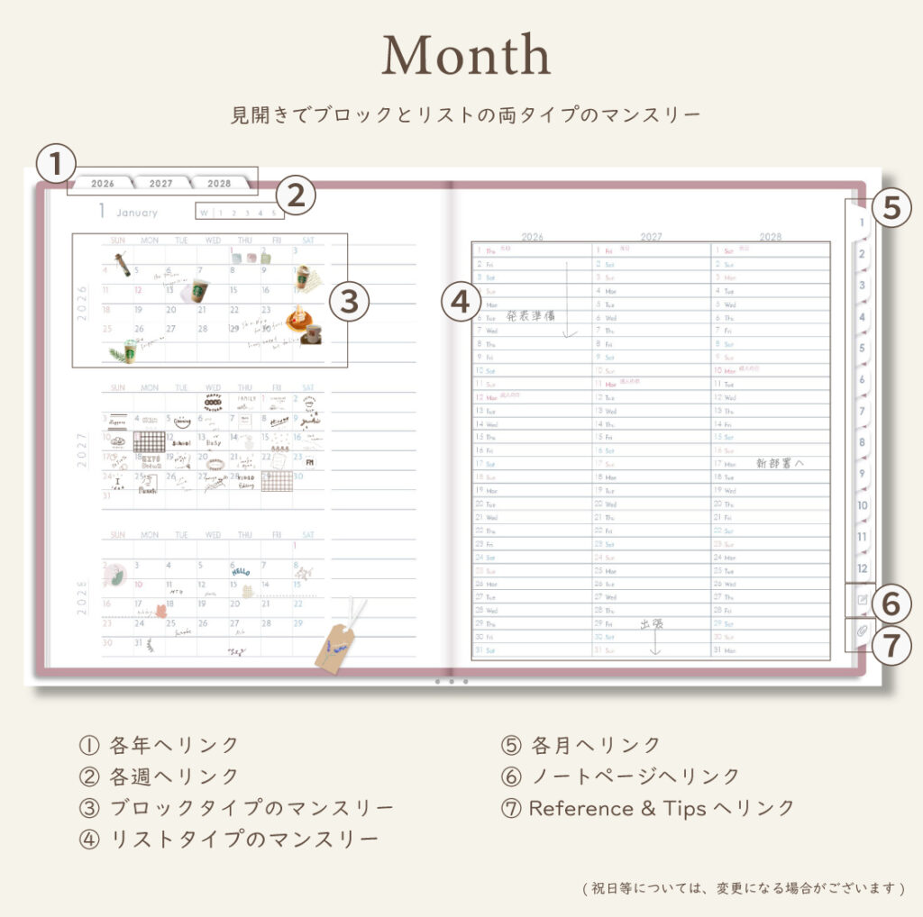 2026年始まり「3年手帳」(2026-2028)[日:バーチカル/色:サクラ]