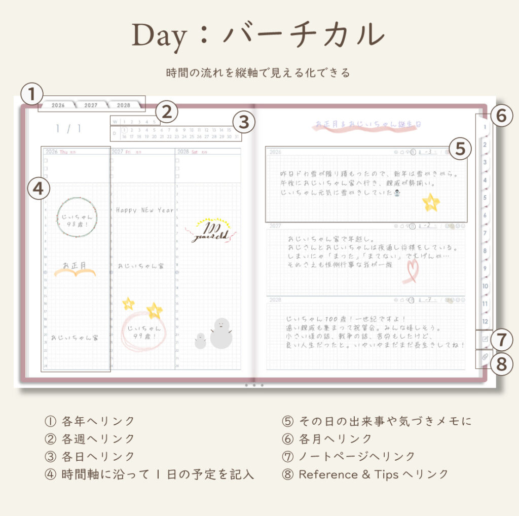 連用手帳のように「昨年の同じ日」をすぐ振り返れるのが最大の魅力です。