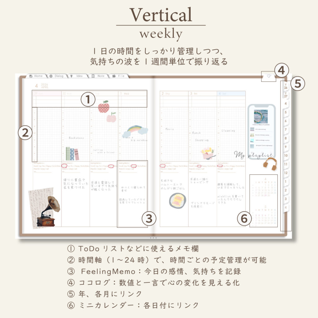 2026年4月始まりDIALOG[日曜始まり/週:バーチカル/日:1DAY/色:マロン]