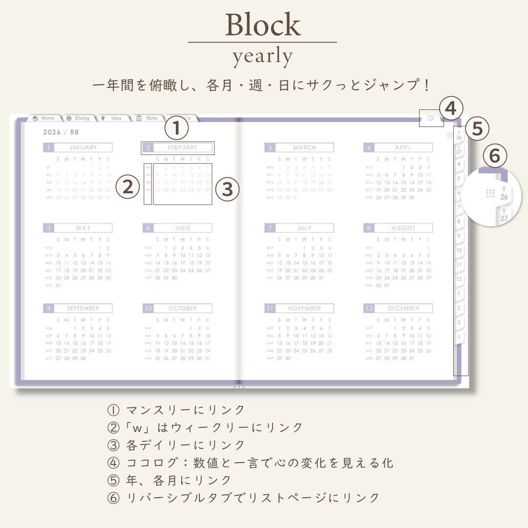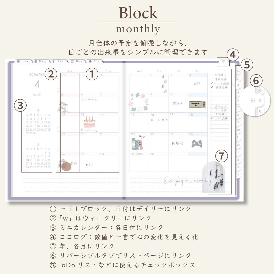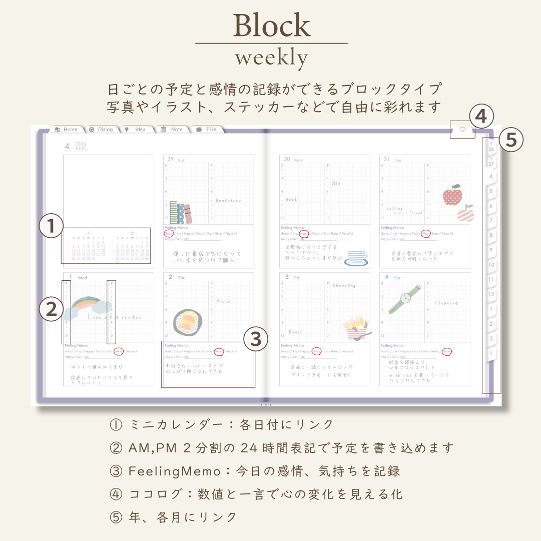 2026年4月始まりDIALOG[日曜始まり/週:ブロック/日:1DAY/色:スミレ]
