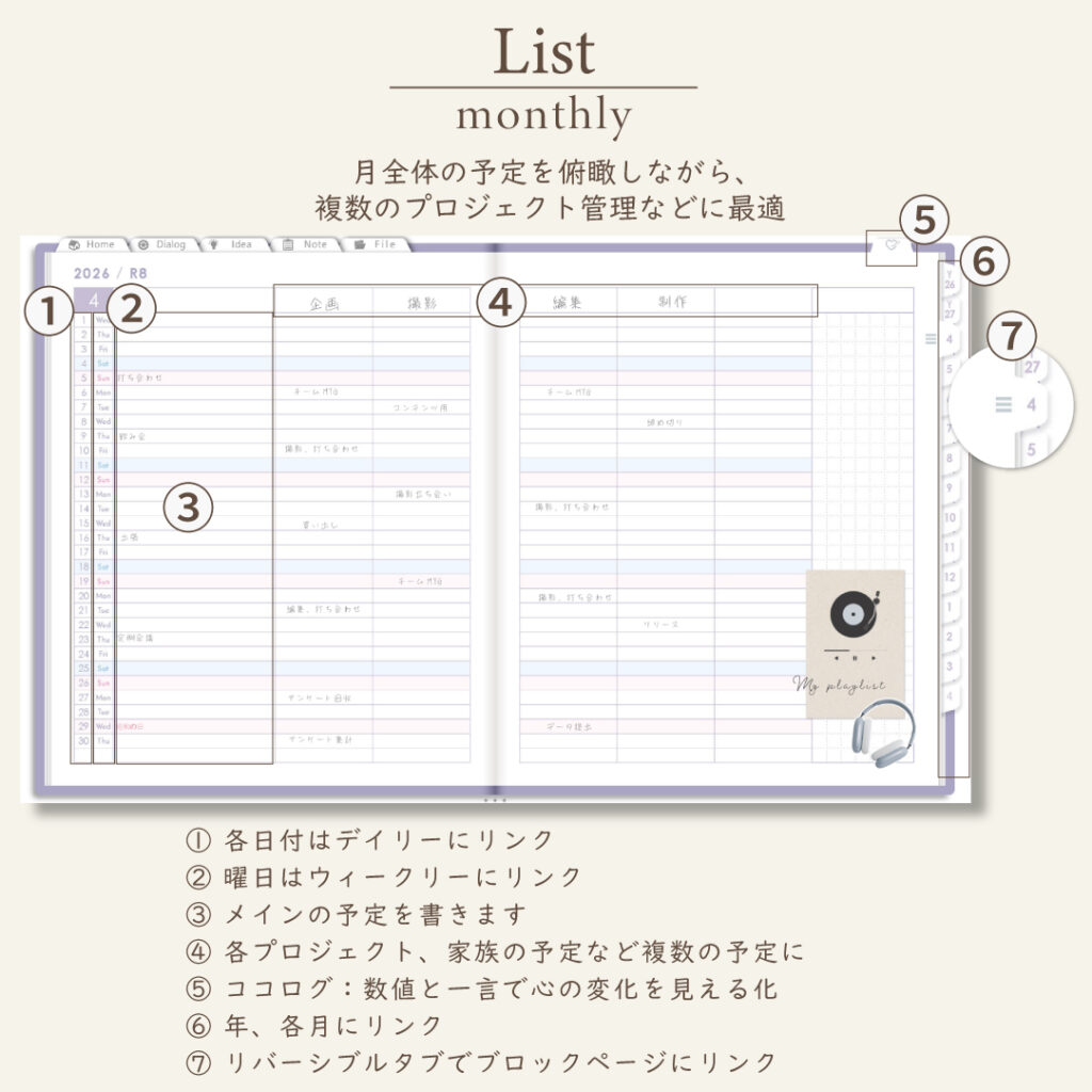 • 年・月ページは「ブロック」と「リスト」がリバーシブル
