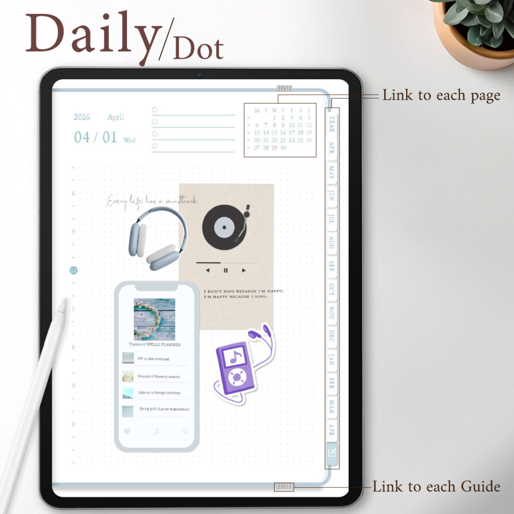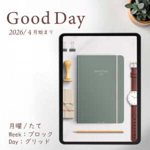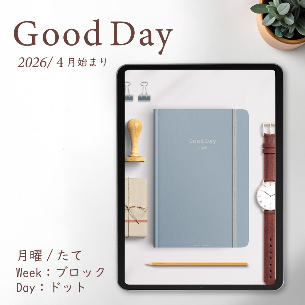 2026年4月始まり「Good Day」縦タイプ[月曜始まり/週:ブロック/日:ドット/色:アクア]