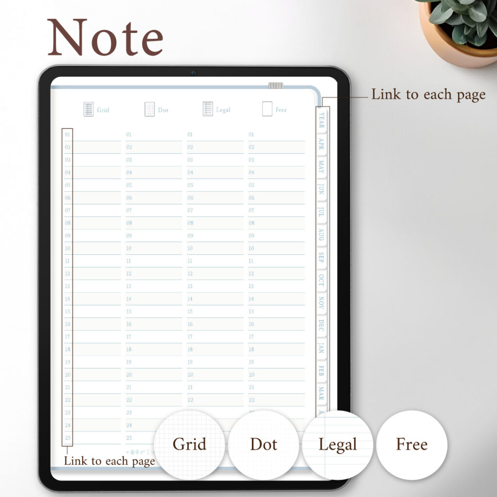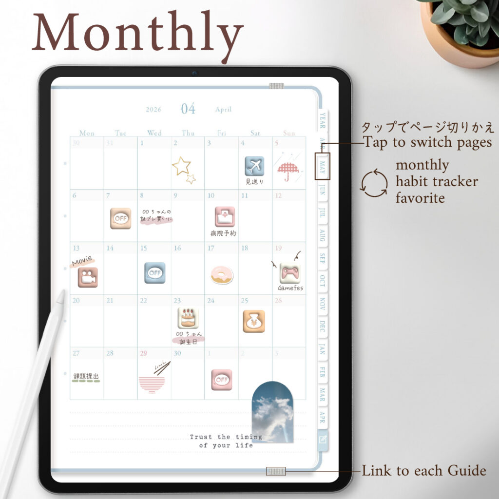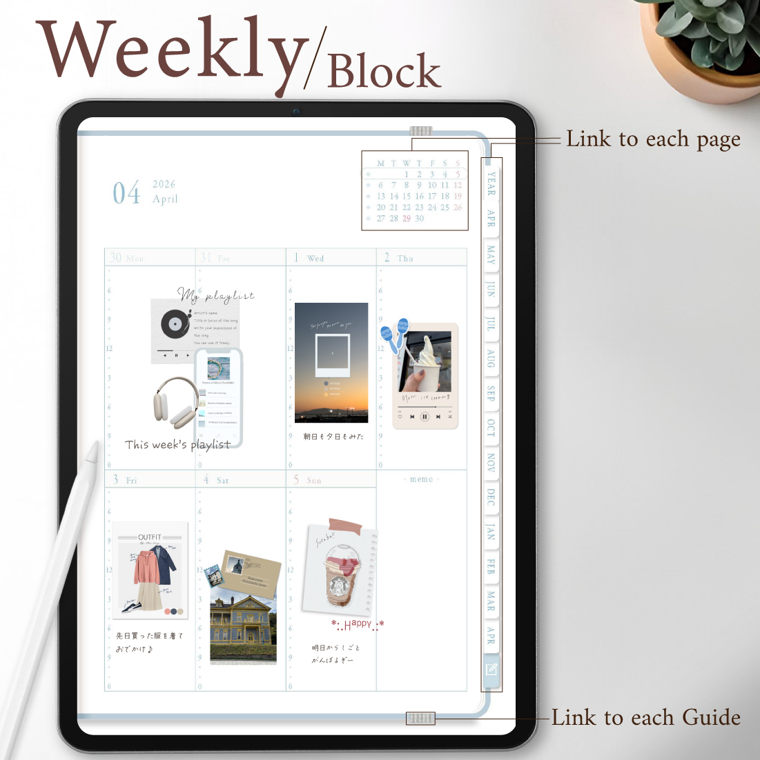 ・日付はDay、曜日はWeekにリンクしているので、どのページからも行き来し、チェックが簡単。