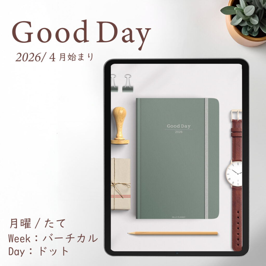 2026年4月始まり「Good Day」縦タイプ[月曜始まり/週:バーチカル/日:ドット/色:ミント]