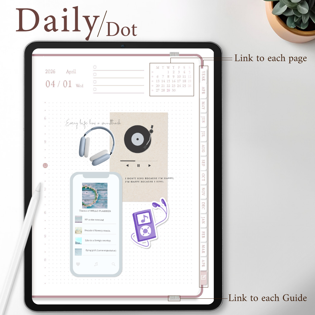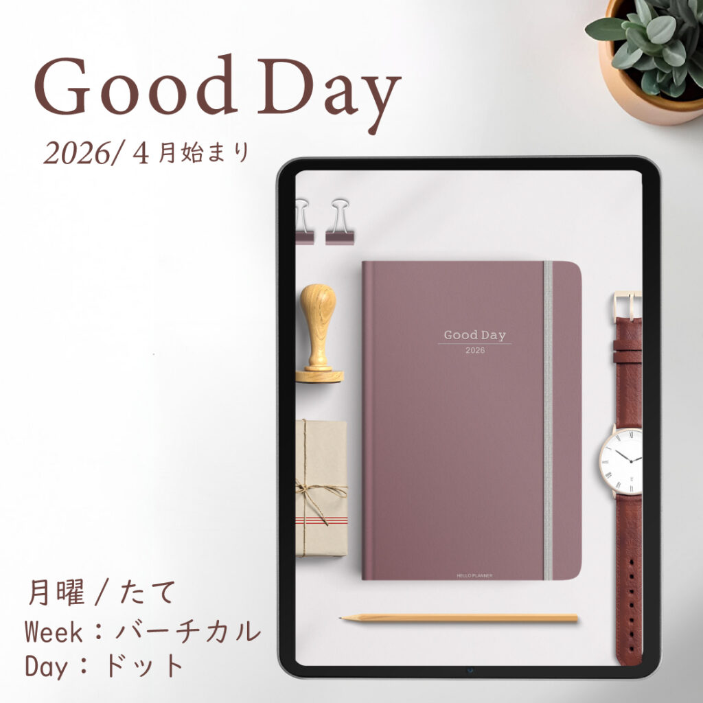 2026年4月始まり「Good Day」縦タイプ[月曜始まり/週:バーチカル/日:ドット/色:サクラ]