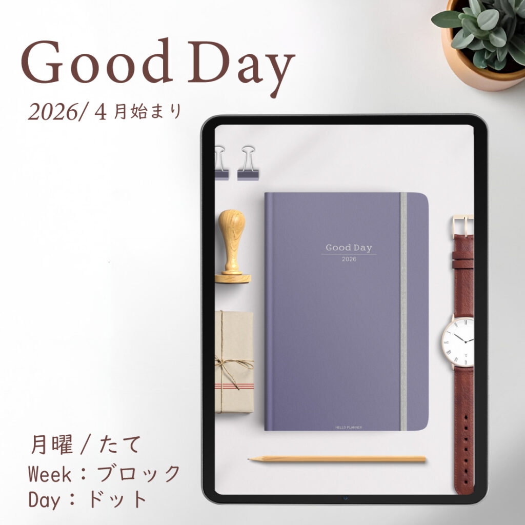 2026年4月始まり「Good Day」縦タイプ[月曜始まり/週:ブロック/日:ドット/色:スミレ]