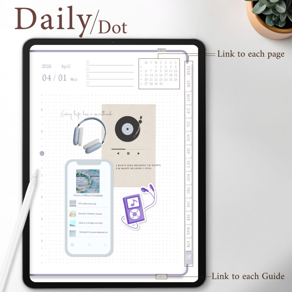 2026年4月始まり「Good Day」縦タイプ[月曜始まり/週:バーチカル/日:ドット/色:スミレ]