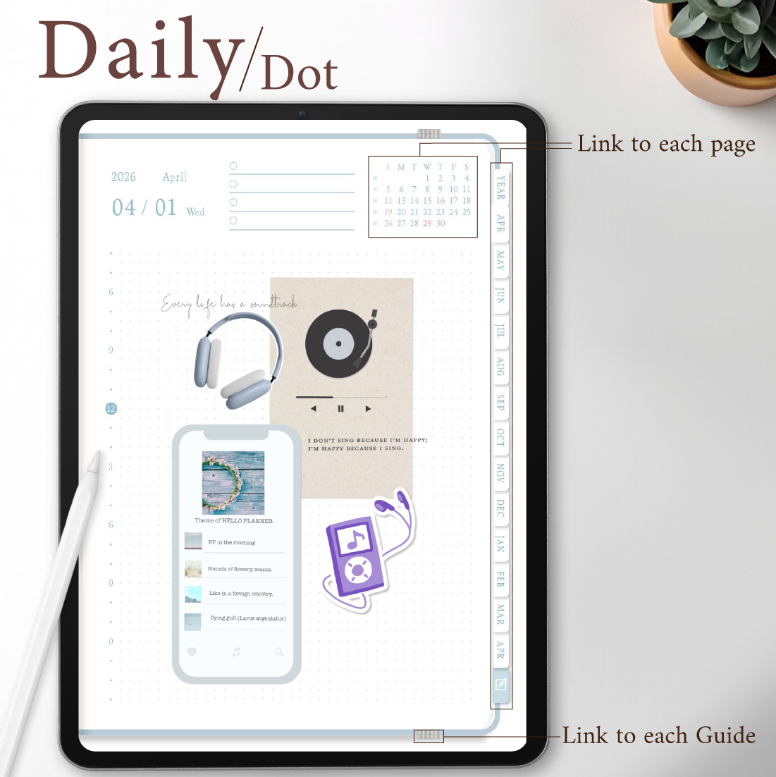 2026年4月始まり「Good Day」縦タイプ[日曜始まり/週:ブロック/日:ドット/色:アクア]