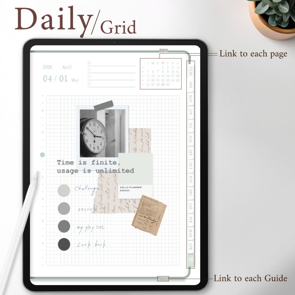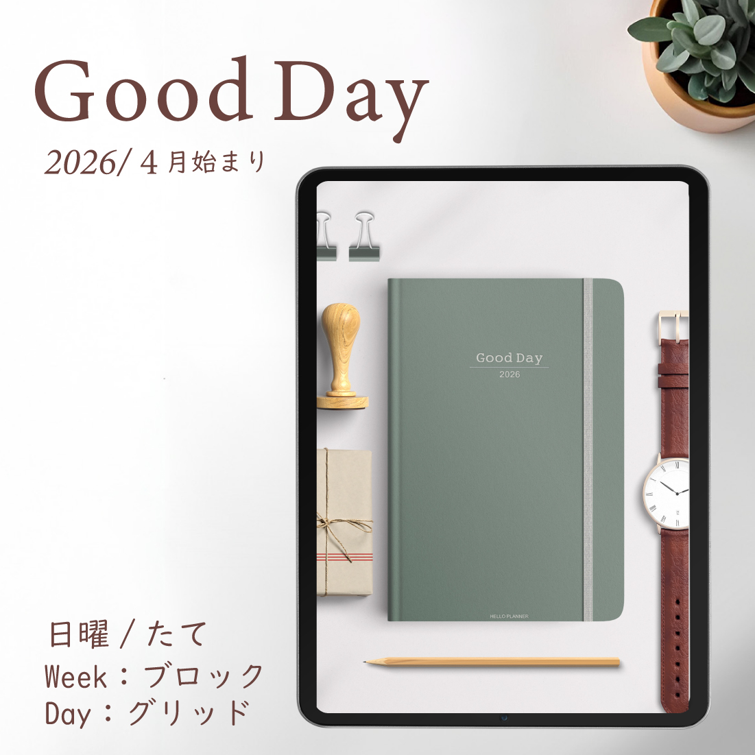 2026年4月始まり「Good Day」縦タイプ[日曜始まり/週:ブロック/日:グリッド/色:ミント]