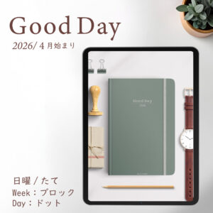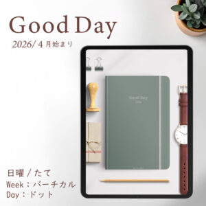 2026年4月始まり「Good Day」縦タイプ[日曜始まり/週:バーチカル/日:グリッド/色:ミント]