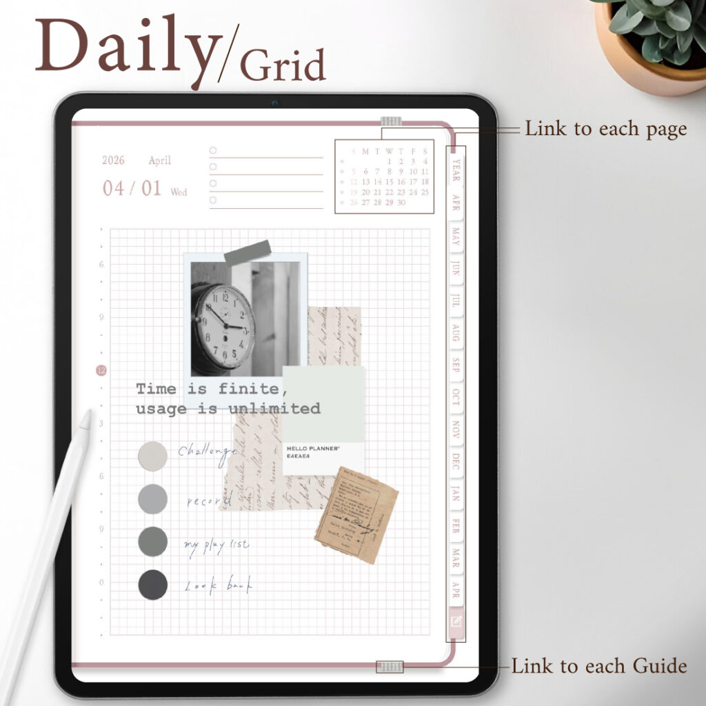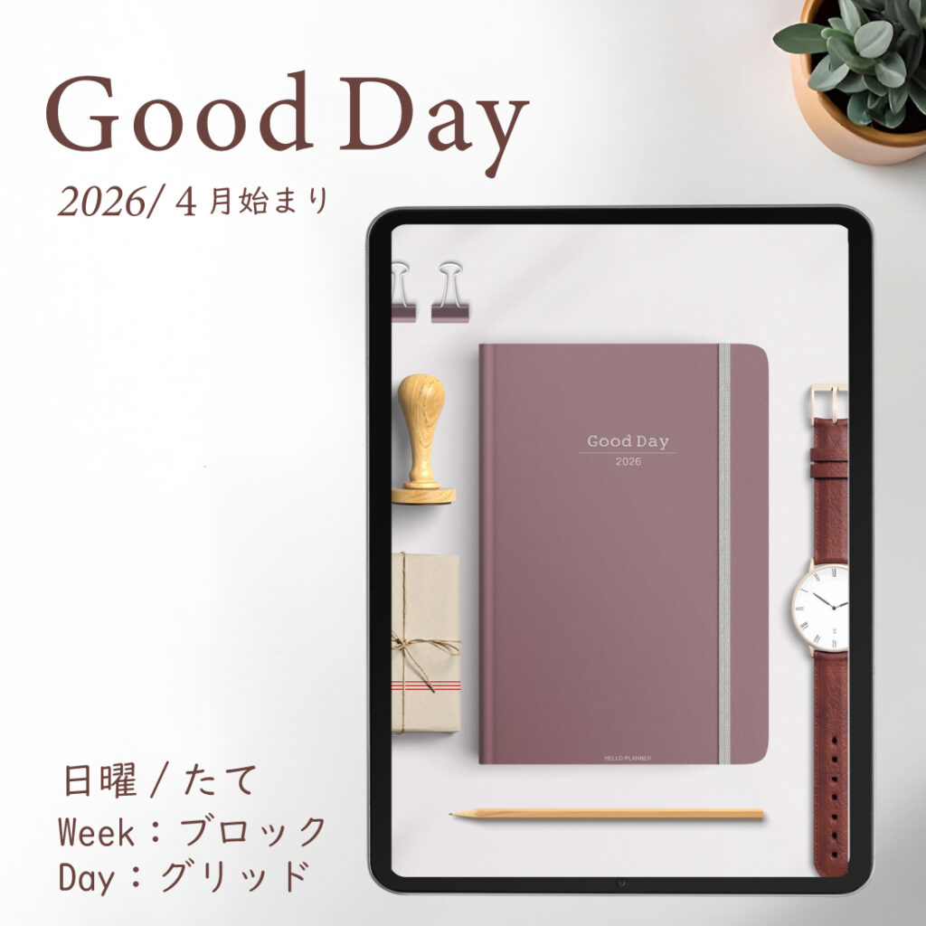 2026年4月始まり「Good Day」縦タイプ[日曜始まり/週:ブロック/日:グリッド/色:サクラ]