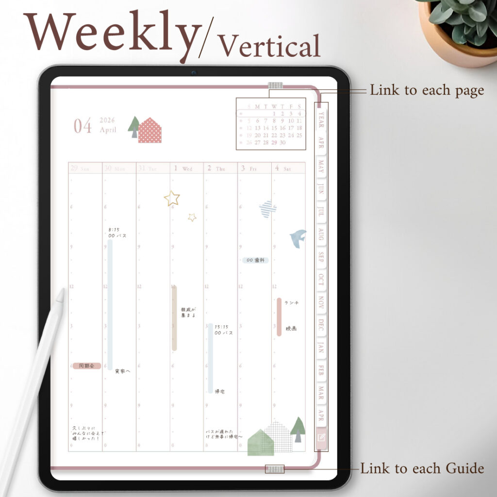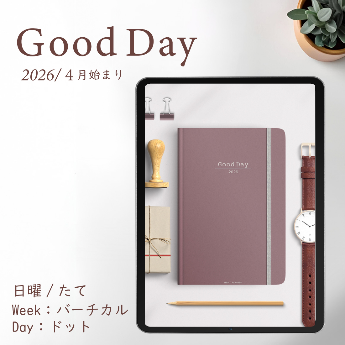 2026年4月始まり「Good Day」縦タイプ[日曜始まり/週:バーチカル/日:ドット/色:サクラ]