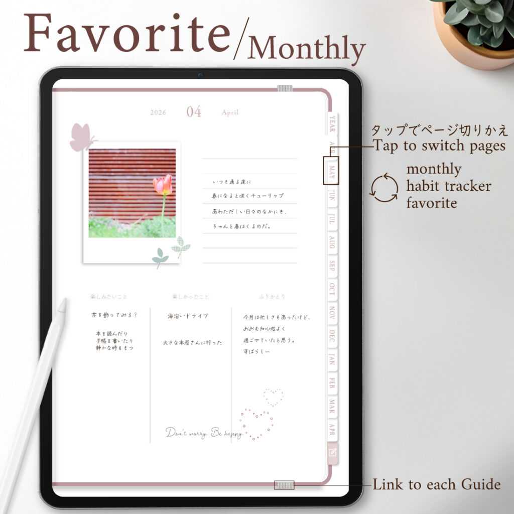 毎月の初めに「楽しみたいこと」、毎月のおわりに「楽しかったこと」、ふりかえりとお気に入りの写真を添えて
