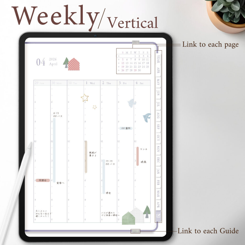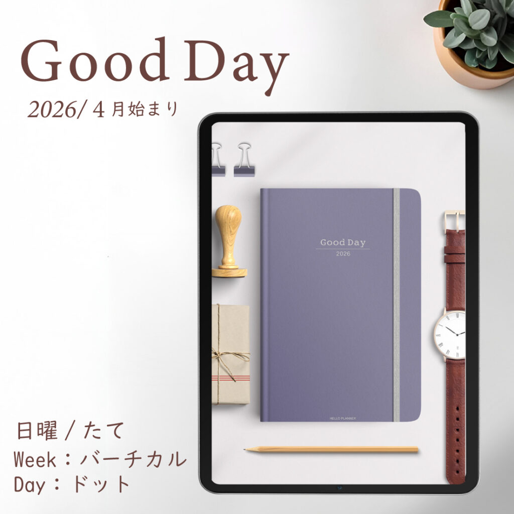 2026年4月始まり「Good Day」縦タイプ[日曜始まり/週:バーチカル/日:ドット/色:スミレ]