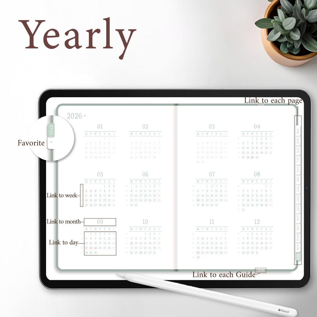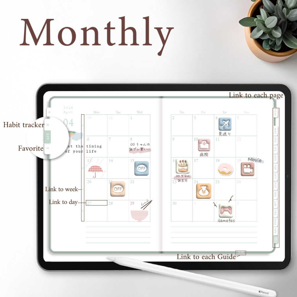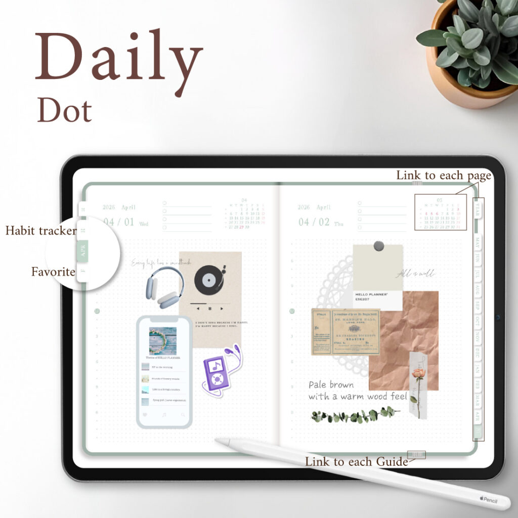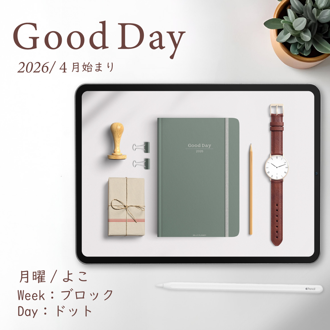 2026年4月始まり「Good Day」横タイプ[月曜始まり/週:ブロック/日:ドット/色:ミント]