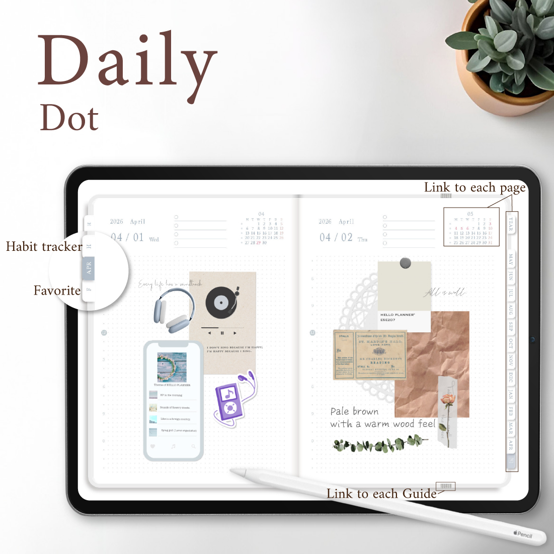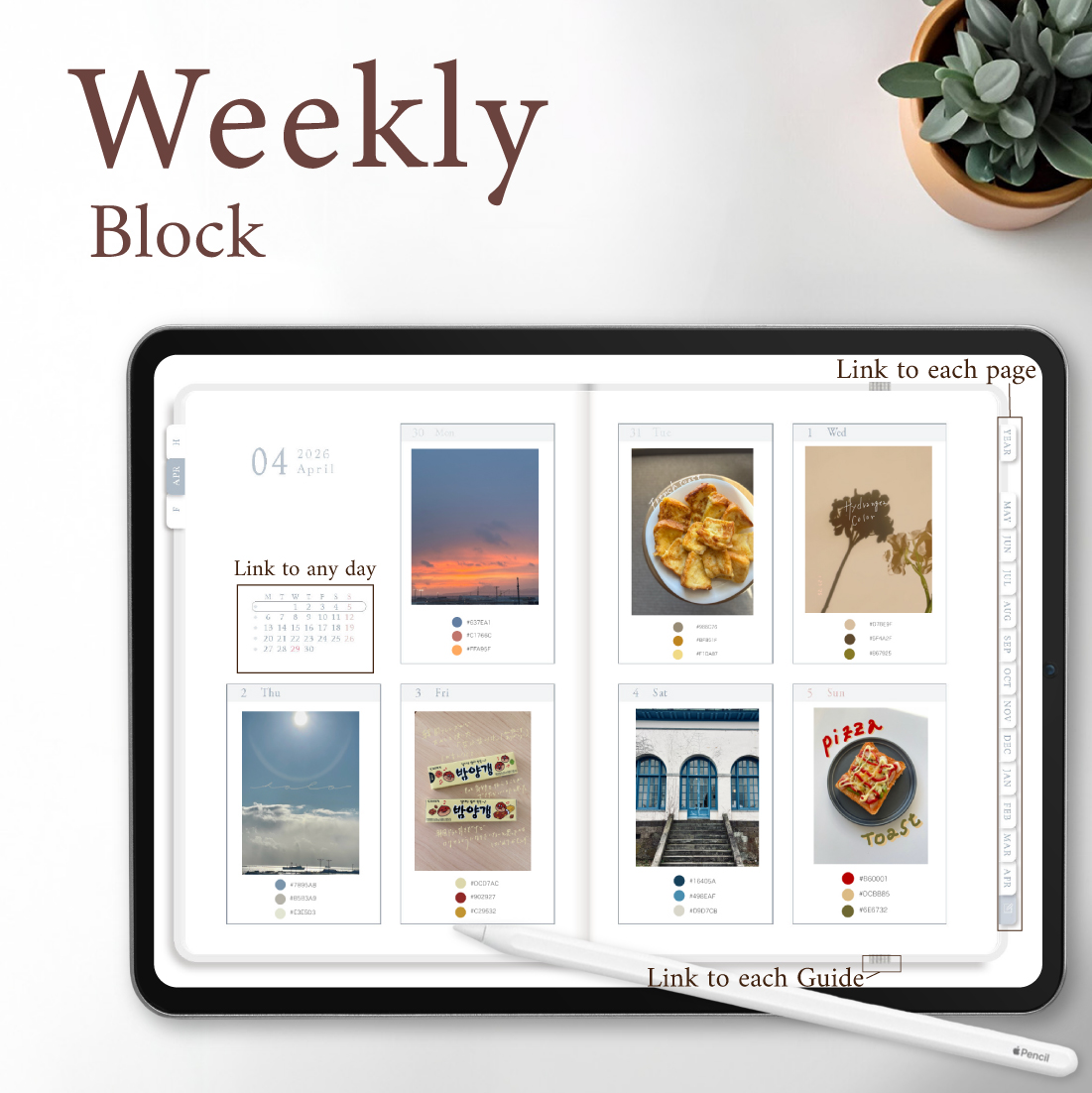 2026年4月始まり「Good Day」横タイプ[月曜始まり/週:ブロック/日:ドット/色:スノー]