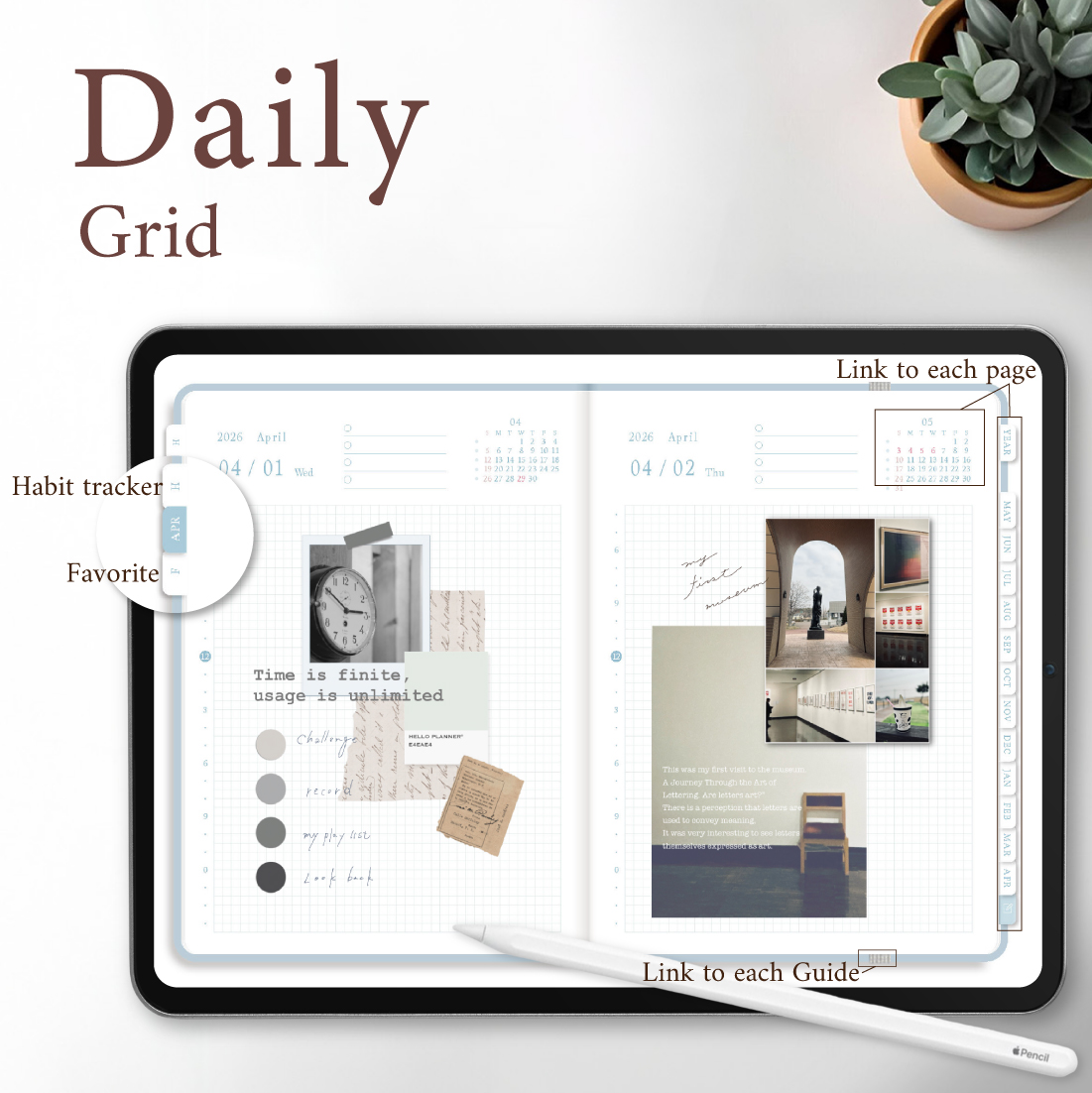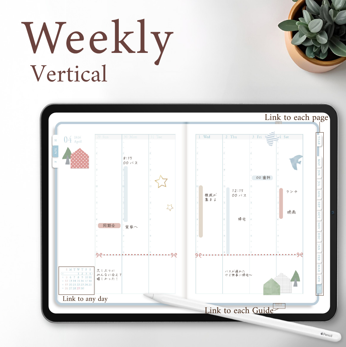 2026年4月始まり「Good Day」横タイプ[日曜始まり/週:バーチカル/日:グリッド/色:アクア]