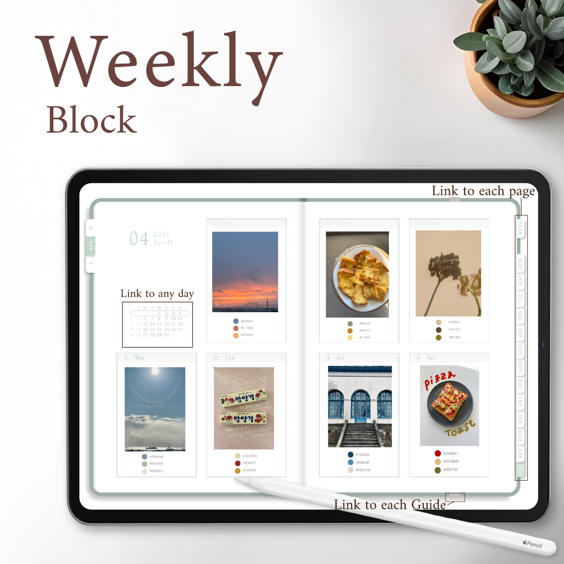 2026年4月始まり「Good Day」横タイプ[日曜始まり/週:ブロック/日:ドット/色:ミント]