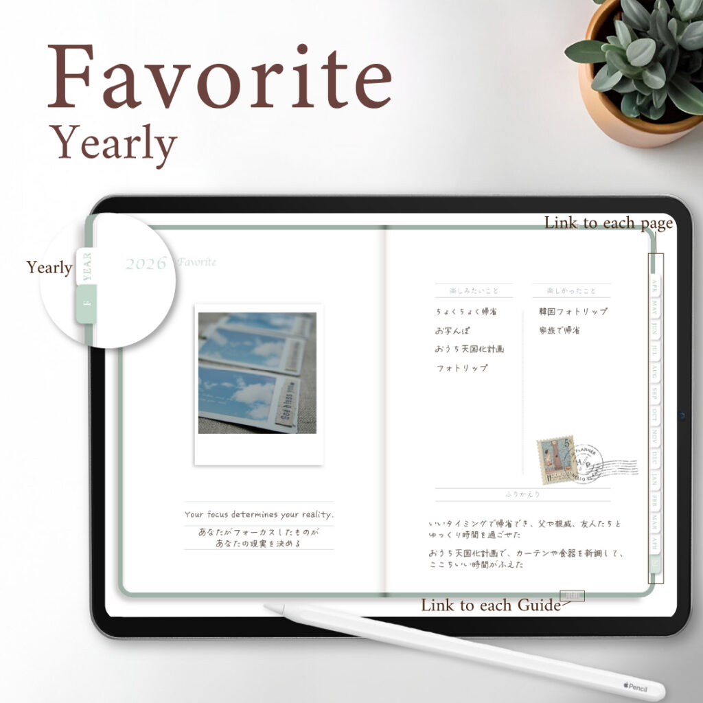 年の初めに「今年一年で楽しみたいこと」、年のおわりに「今年 楽しかったこと」、ふりかえりとお気に入りの写真を添えて