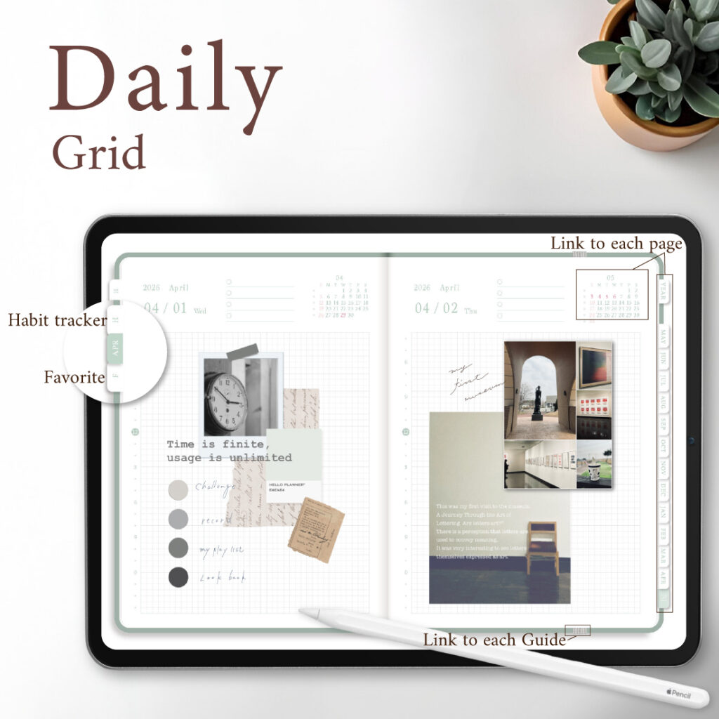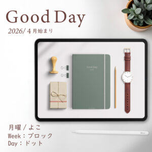 2026年4月始まり「Good Day」横タイプ[日曜始まり/週:バーチカル/日:グリッド/色:ミント]