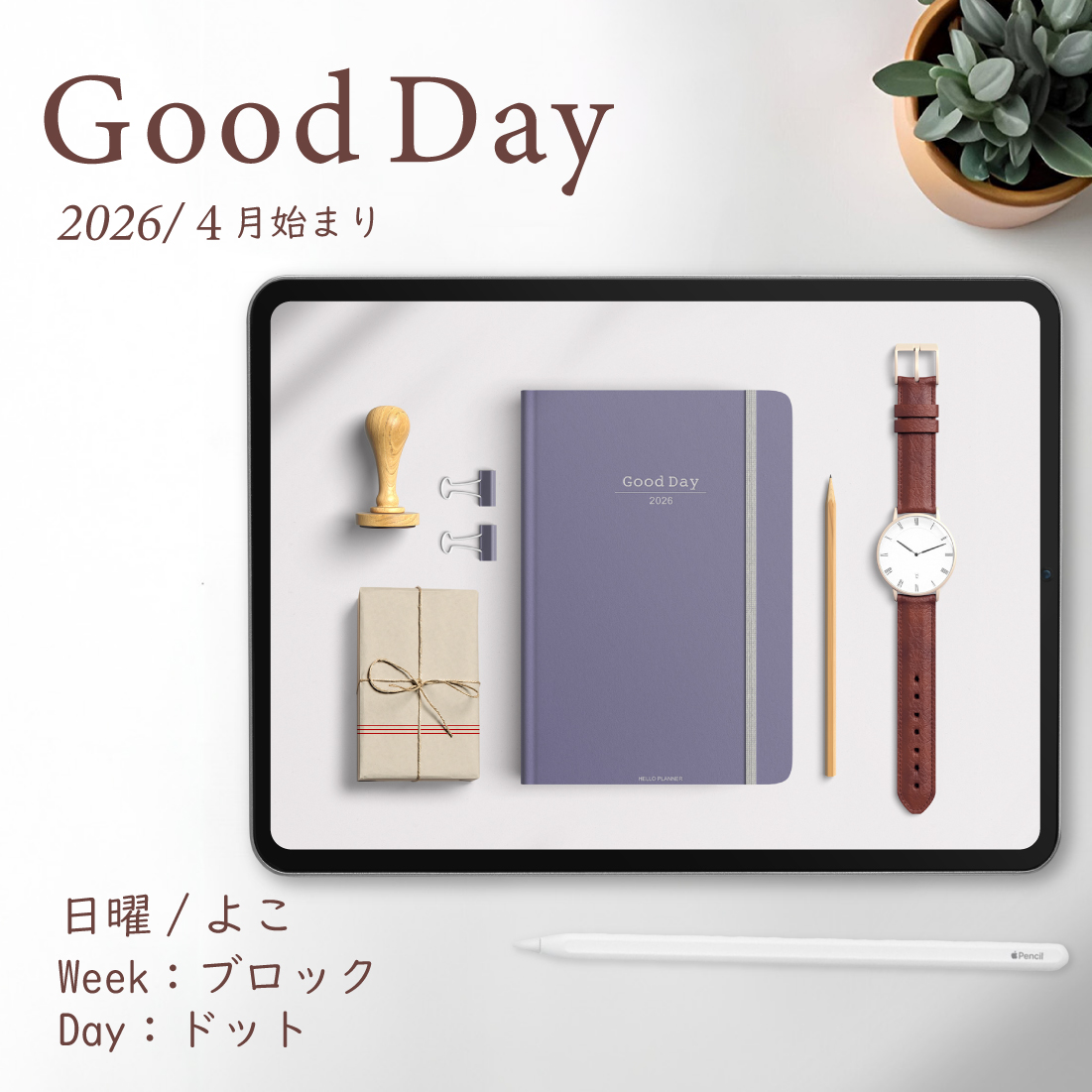 2026年4月始まり「Good Day」横タイプ[日曜始まり/週:ブロック/日:ドット/色:スミレ]