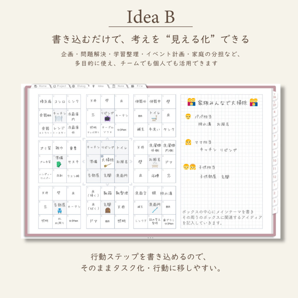 • アイデアを整理できるプランニングシート