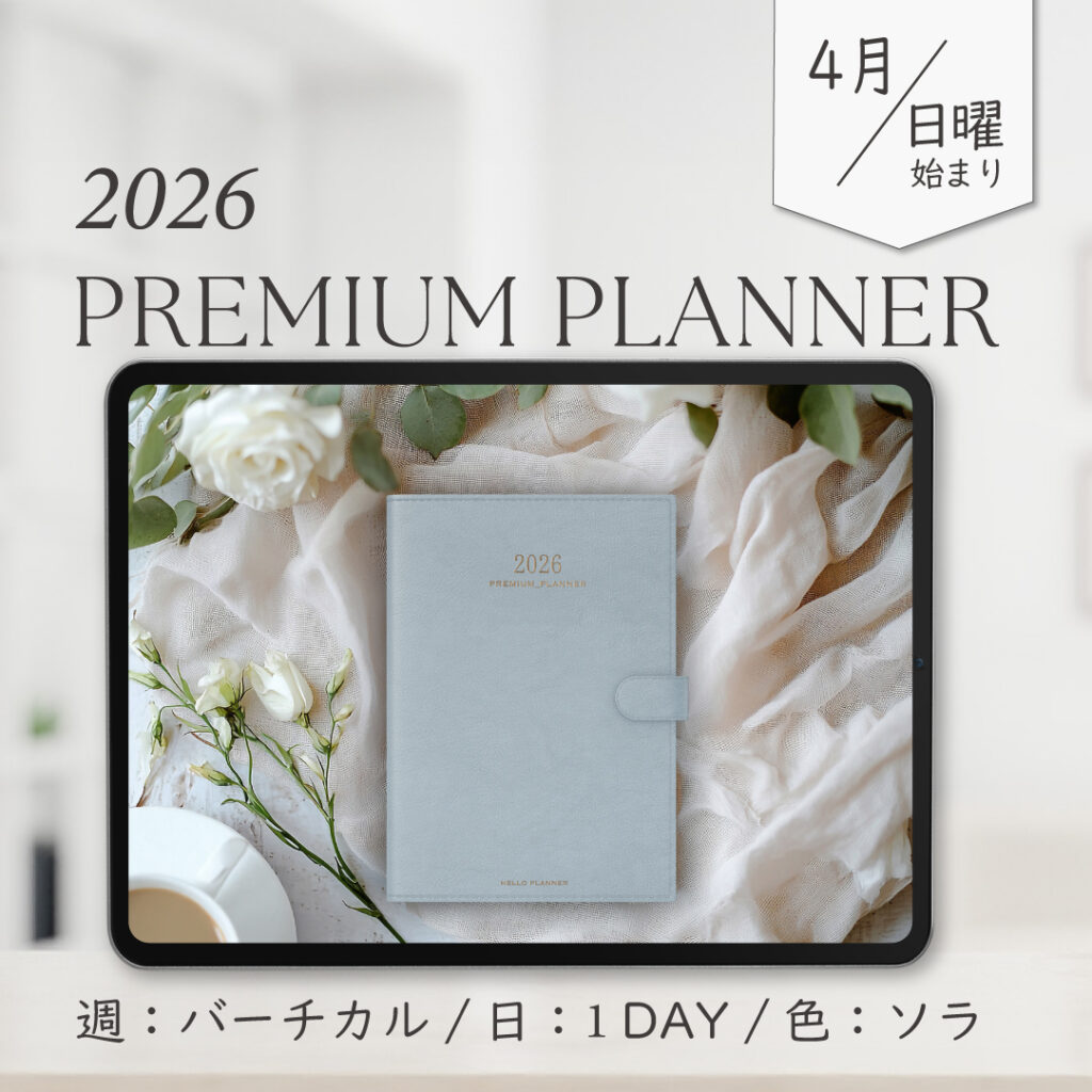 2026年4月始まりPREMIUM PLANNER[日曜始まり/週:バーチカル/日:1DAY/色:ソラ]