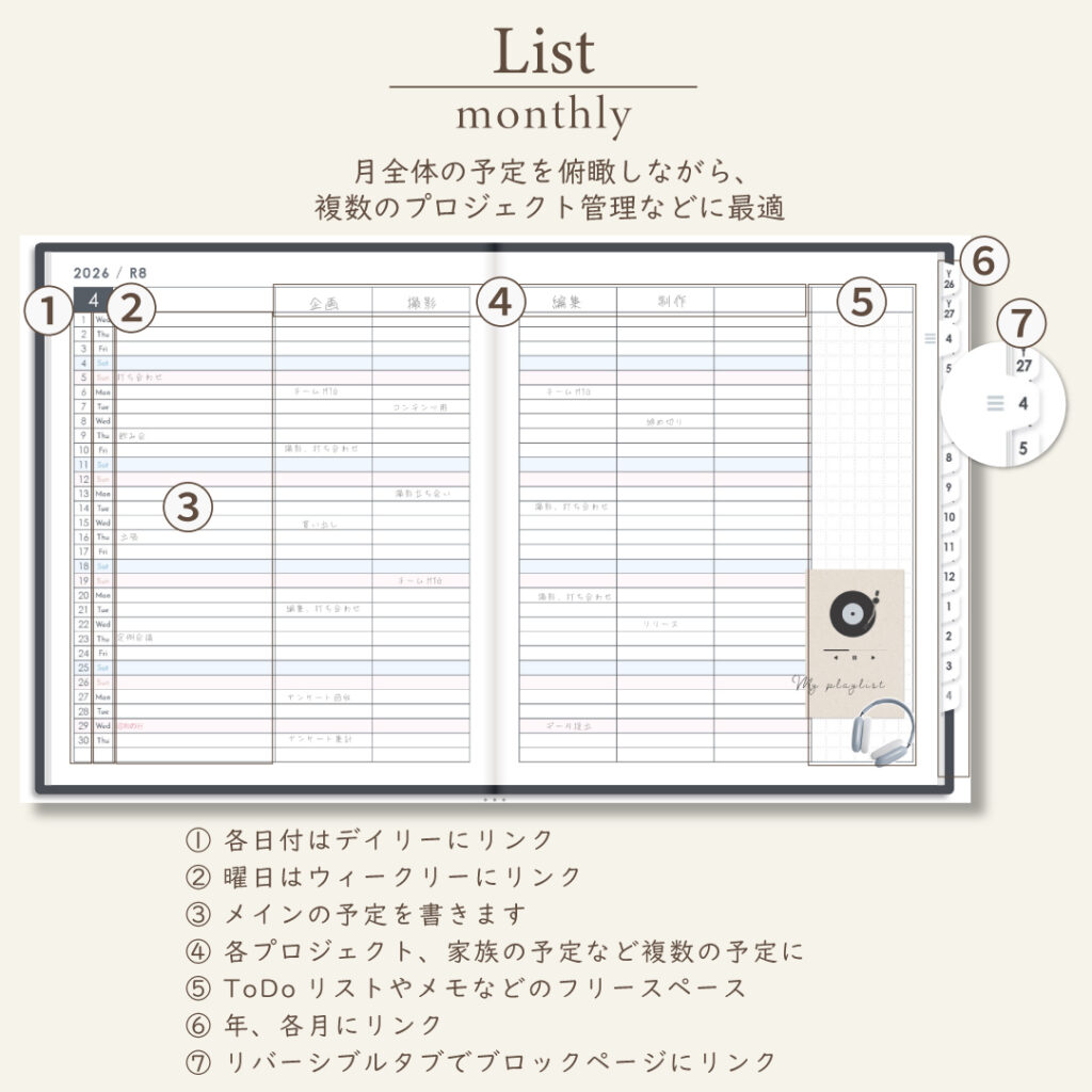 iPadのノートアプリで使うデジタルプランナー。初めての方にも使いやすい便利なハイパーリンクと多彩なレイアウト。