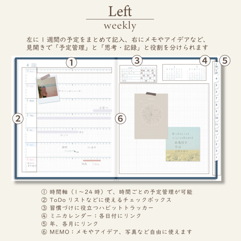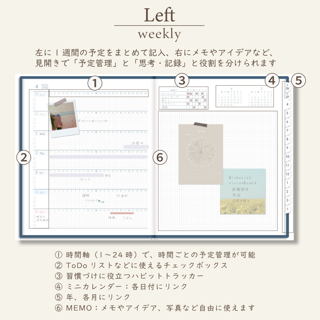 2026年4月始まりスケジュールプランナー[月曜始まり/週:レフト/日:1DAY/色:ネイビー]