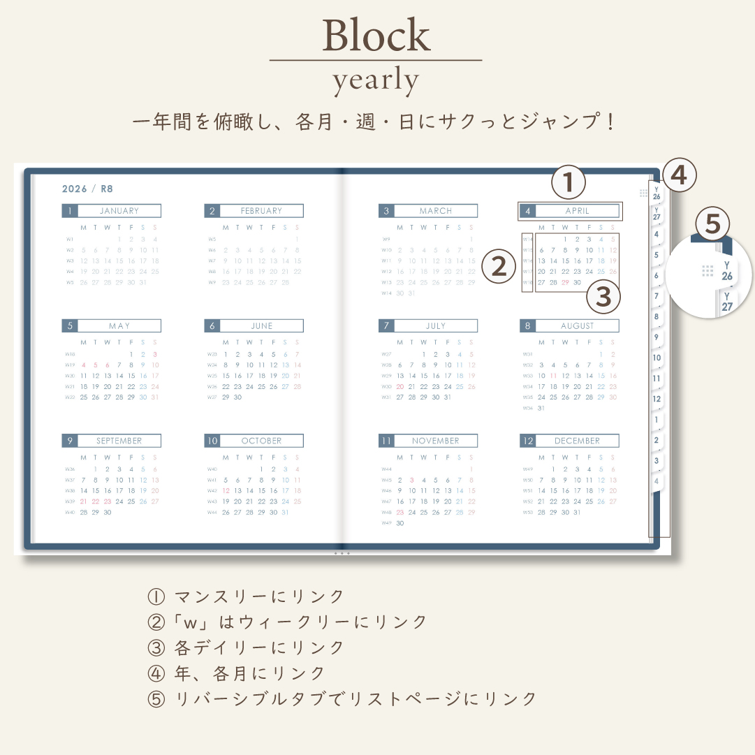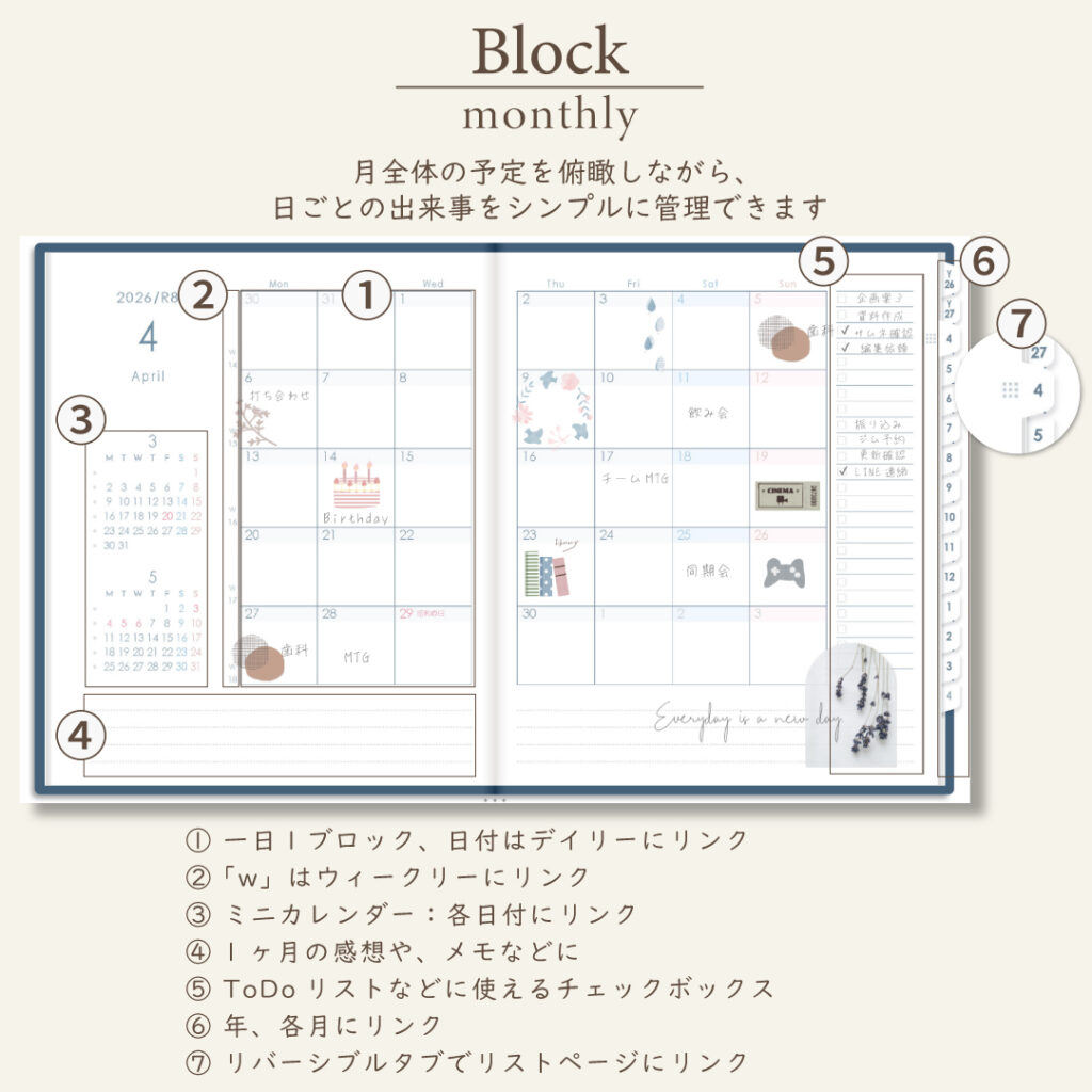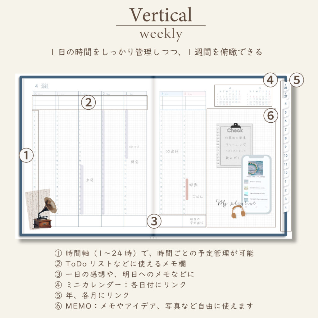 2026年4月始まりスケジュールプランナー[月曜始まり/週:バーチカル/日:1DAY/色:ネイビー]