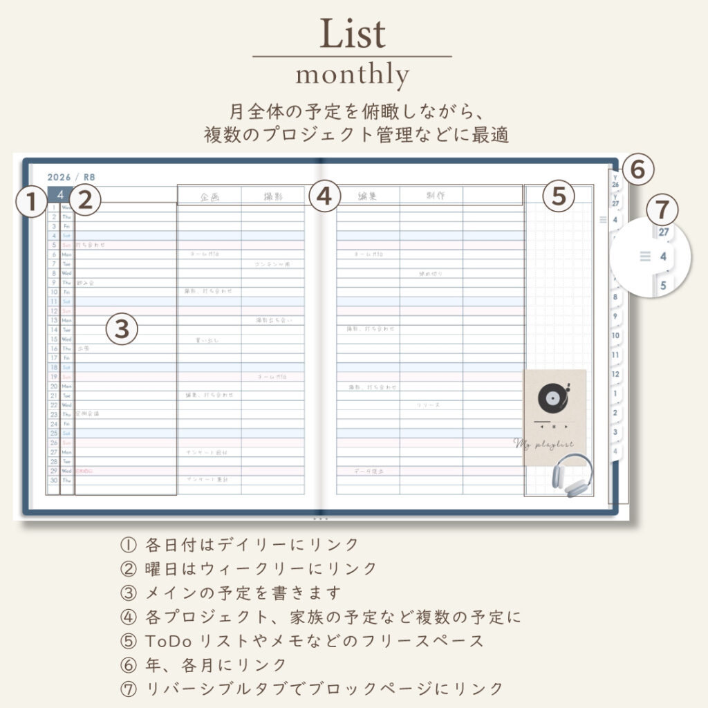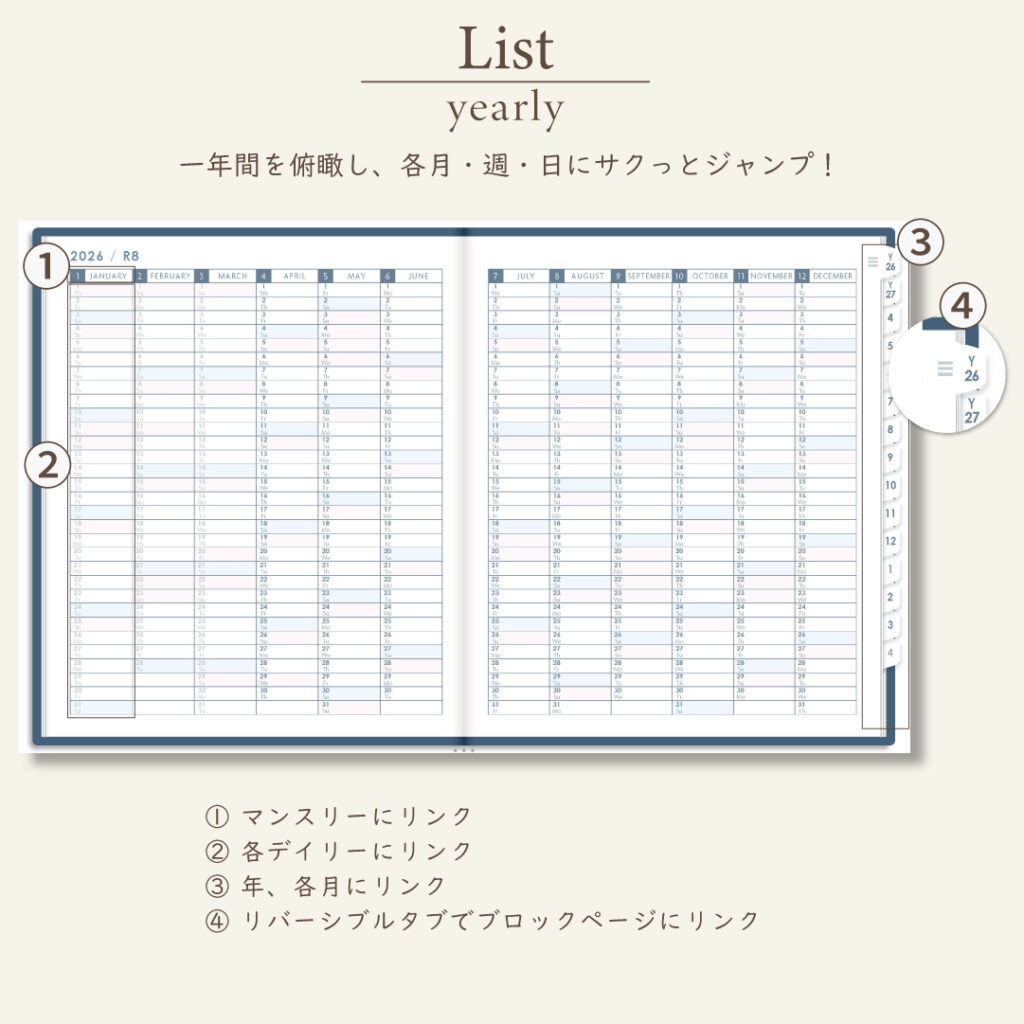 iPadのノートアプリで使うデジタルプランナー。初めての方にも使いやすい便利なハイパーリンクと多彩なレイアウト。