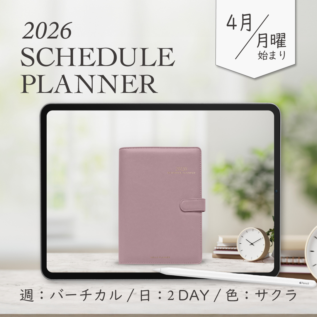2026年4月始まりスケジュールプランナー[月曜始まり/週:バーチカル/日:2DAY/色:サクラ]