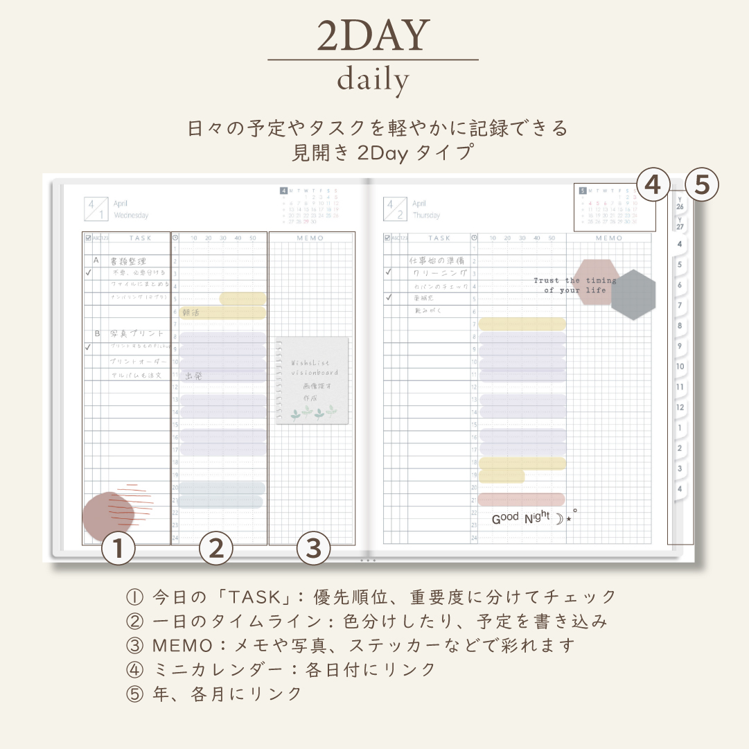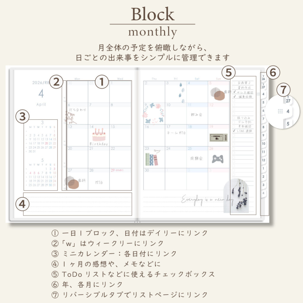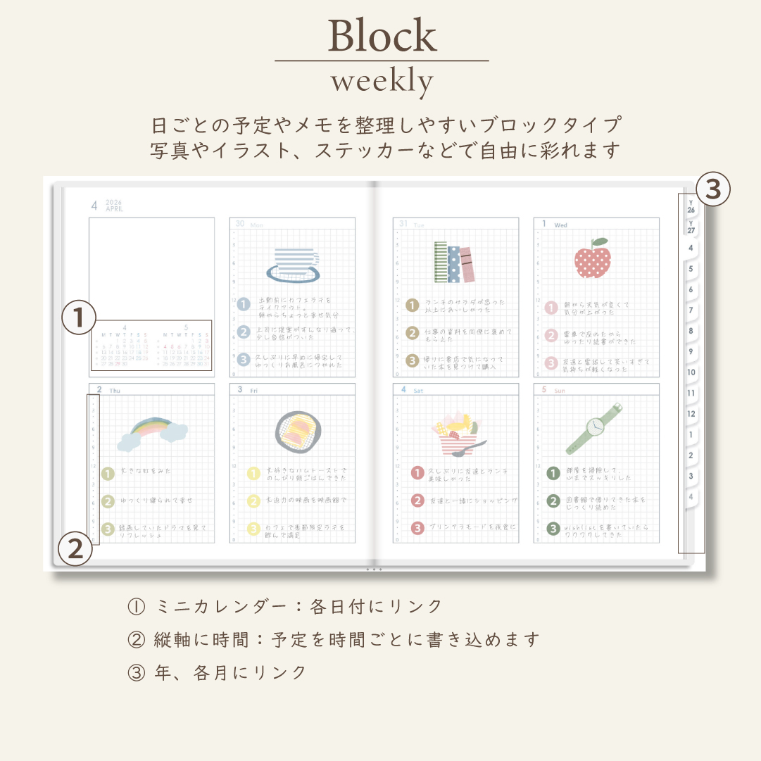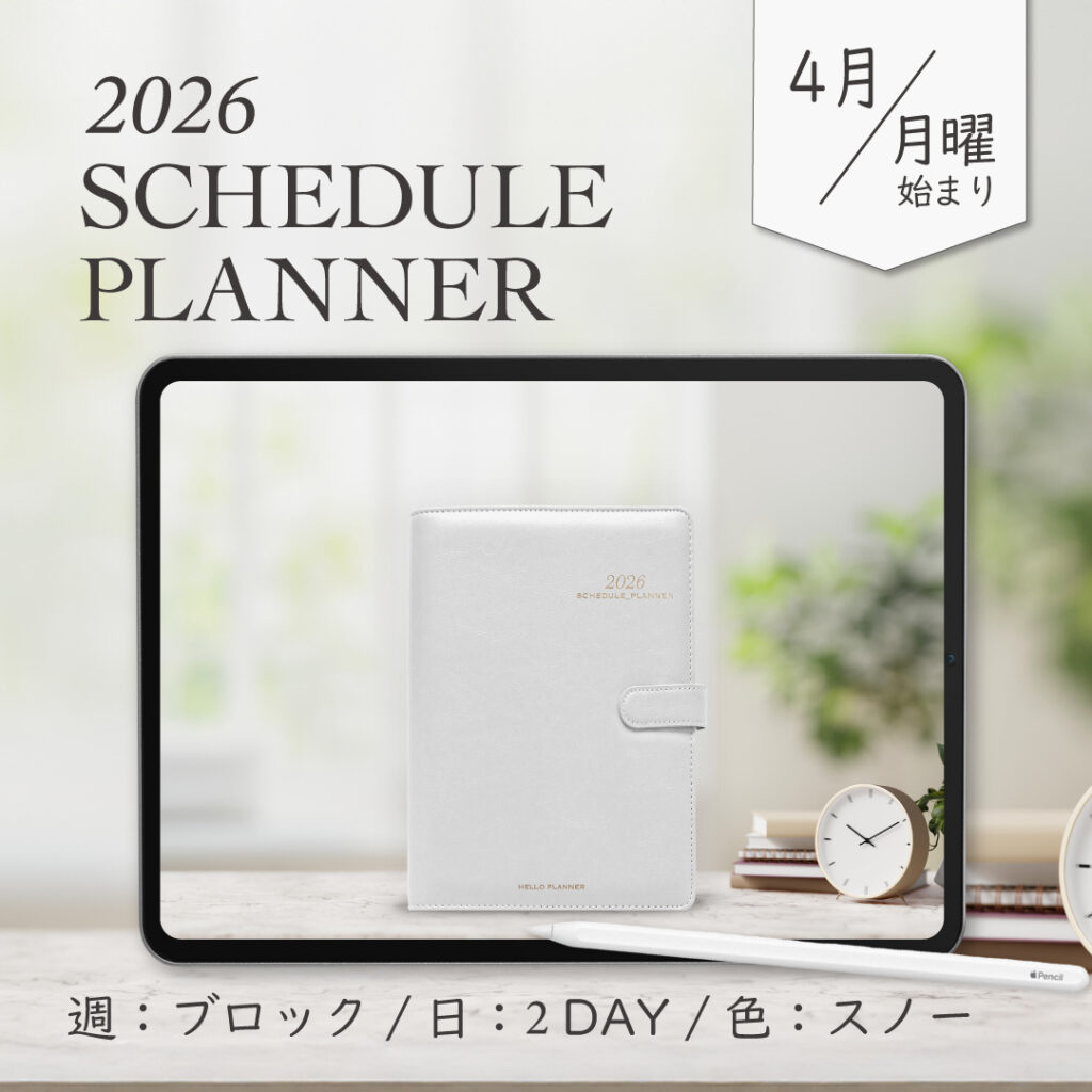 2026年4月始まりスケジュールプランナー[月曜始まり/週:ブロック/日:2DAY/色:スノー]