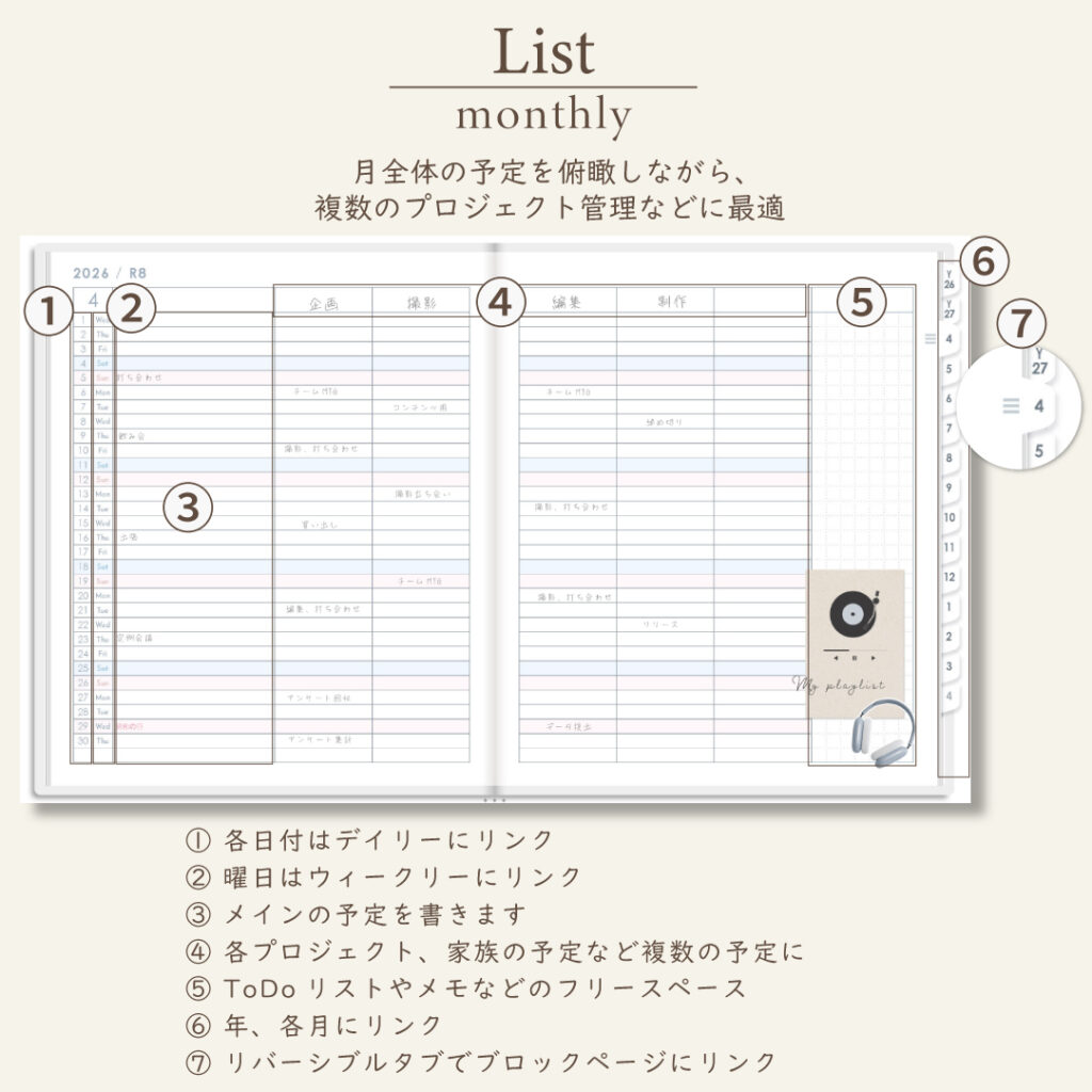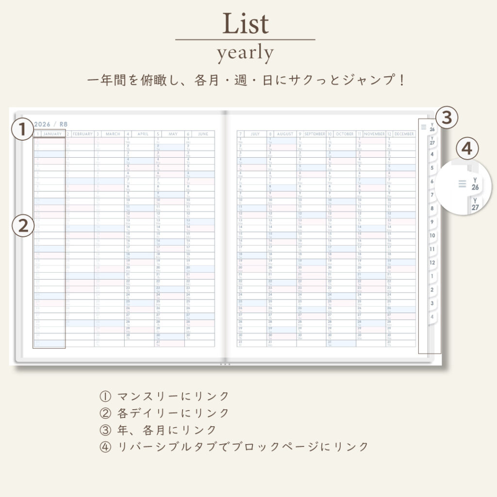 iPadのノートアプリで使うデジタルプランナー。初めての方にも使いやすい便利なハイパーリンクと多彩なレイアウト。