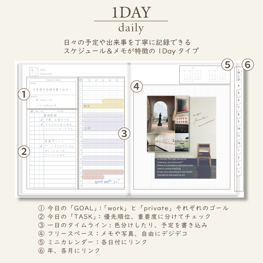 2026年4月始まりスケジュールプランナー[月曜始まり/週:レフト/日:1DAY/色:スノー]