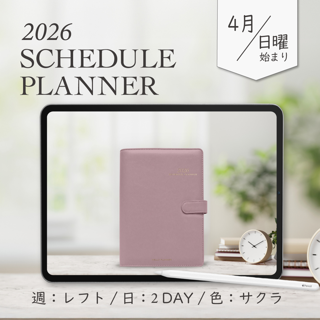 2026年4月始まりスケジュールプランナー[日曜始まり/週:レフト/日:2DAY/色:サクラ]
