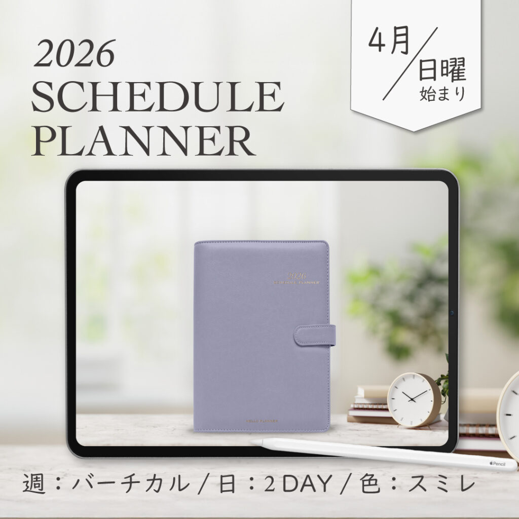 2026年4月始まりスケジュールプランナー[日曜始まり/週:バーチカル/日:2DAY/色:スミレ ]