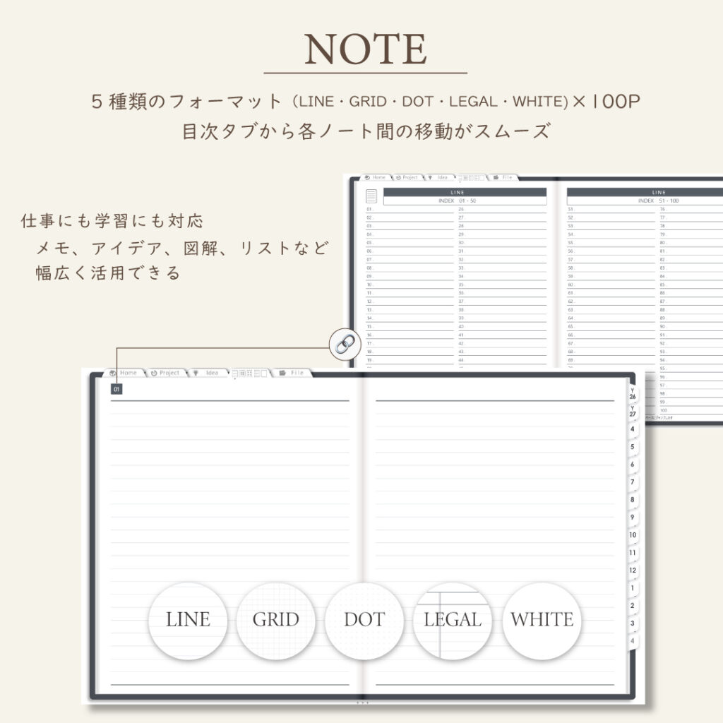 3.たっぷり書けるノート&ファイル