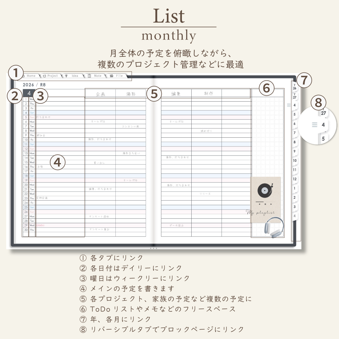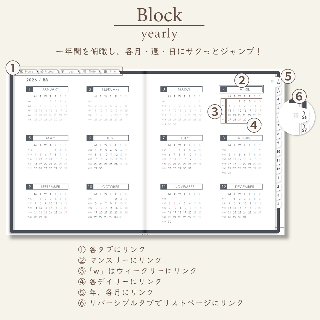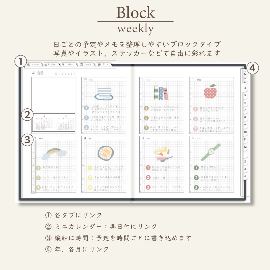 - 週間ページ:Block/Left/Vertical